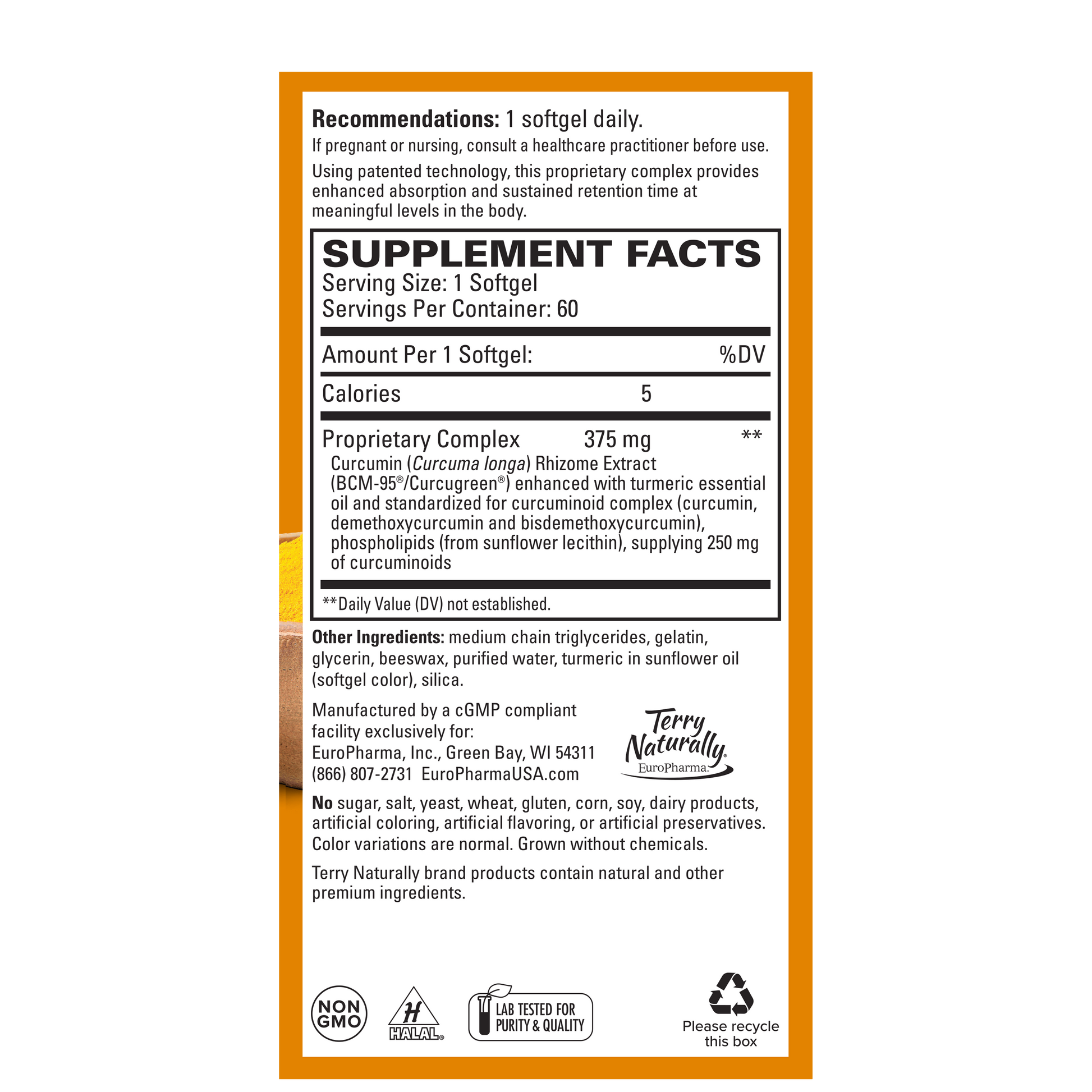 CuraMed 750 mg provides 500 mg of full spectrum curcuminoids per softgel.