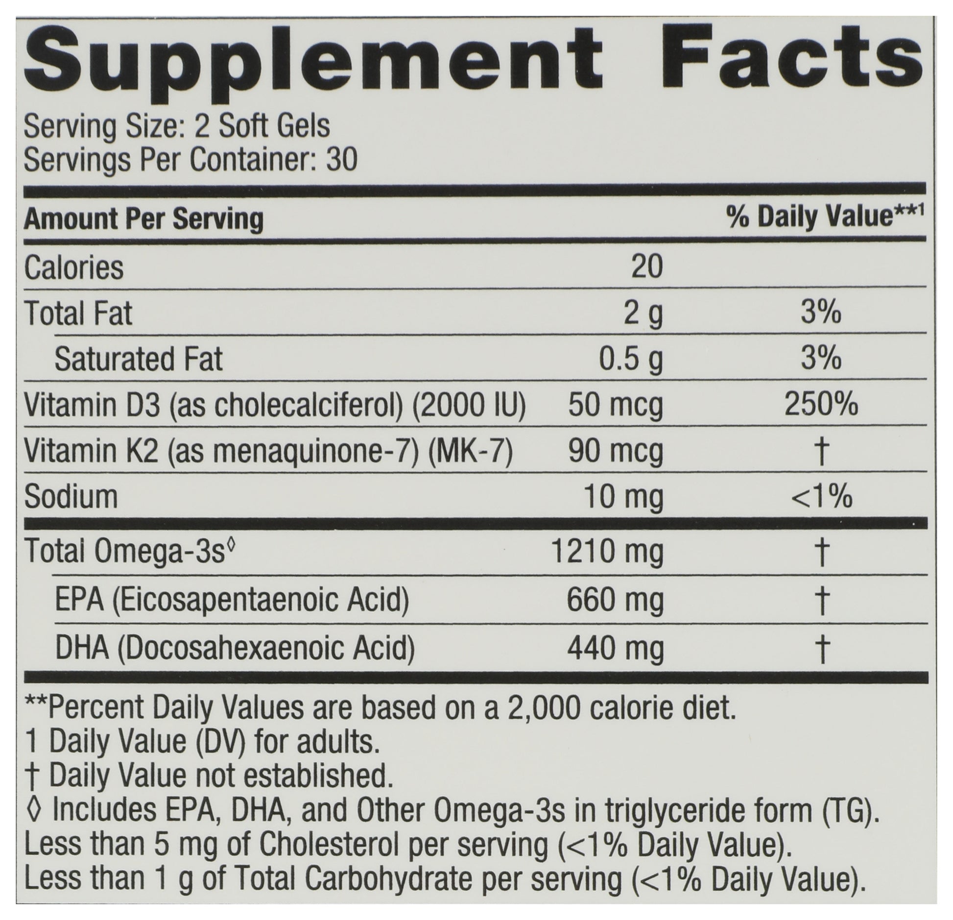 - 1210 MG OMEGA-3S + 2000 IU VITAMIN D3 + 90 MCG VITAMIN K2 PER 2 SOFT GELS